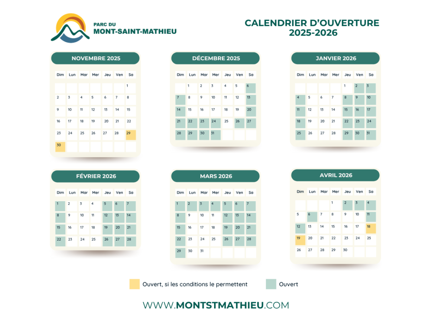 Calendrier de la saison 2025-2026